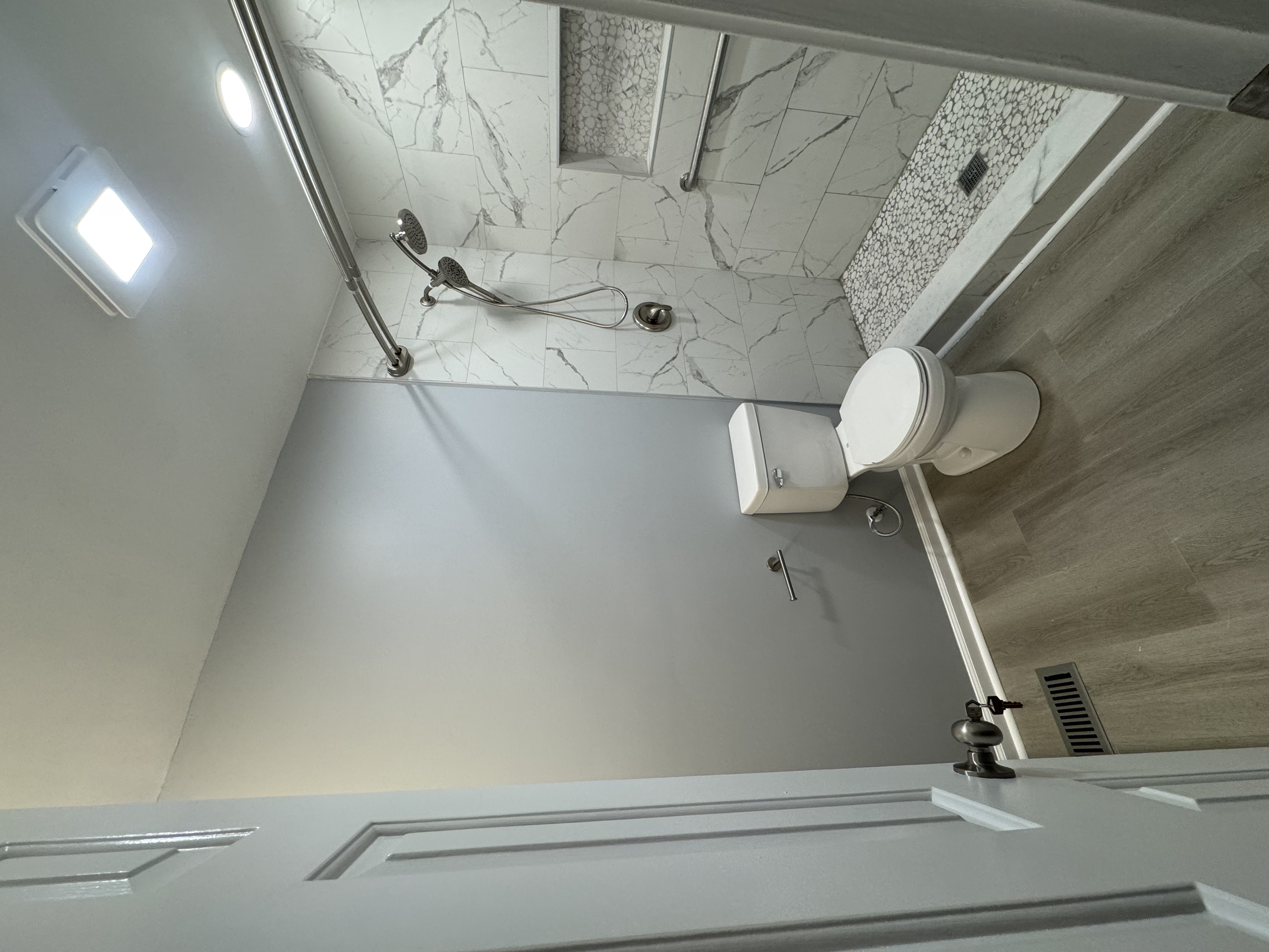 Full bathroom gut-to-finish transformation with custom tile work and modern fixtures.